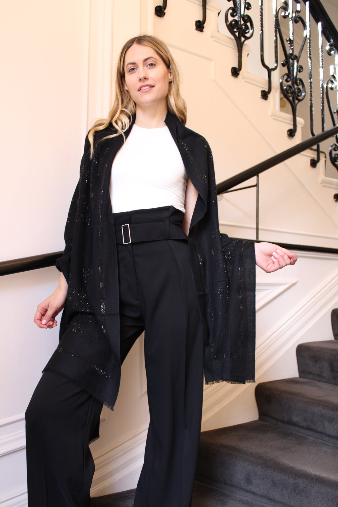 Blue-Black Marble Rectangular Sling and Clutch with Crystal Embellished Clasps