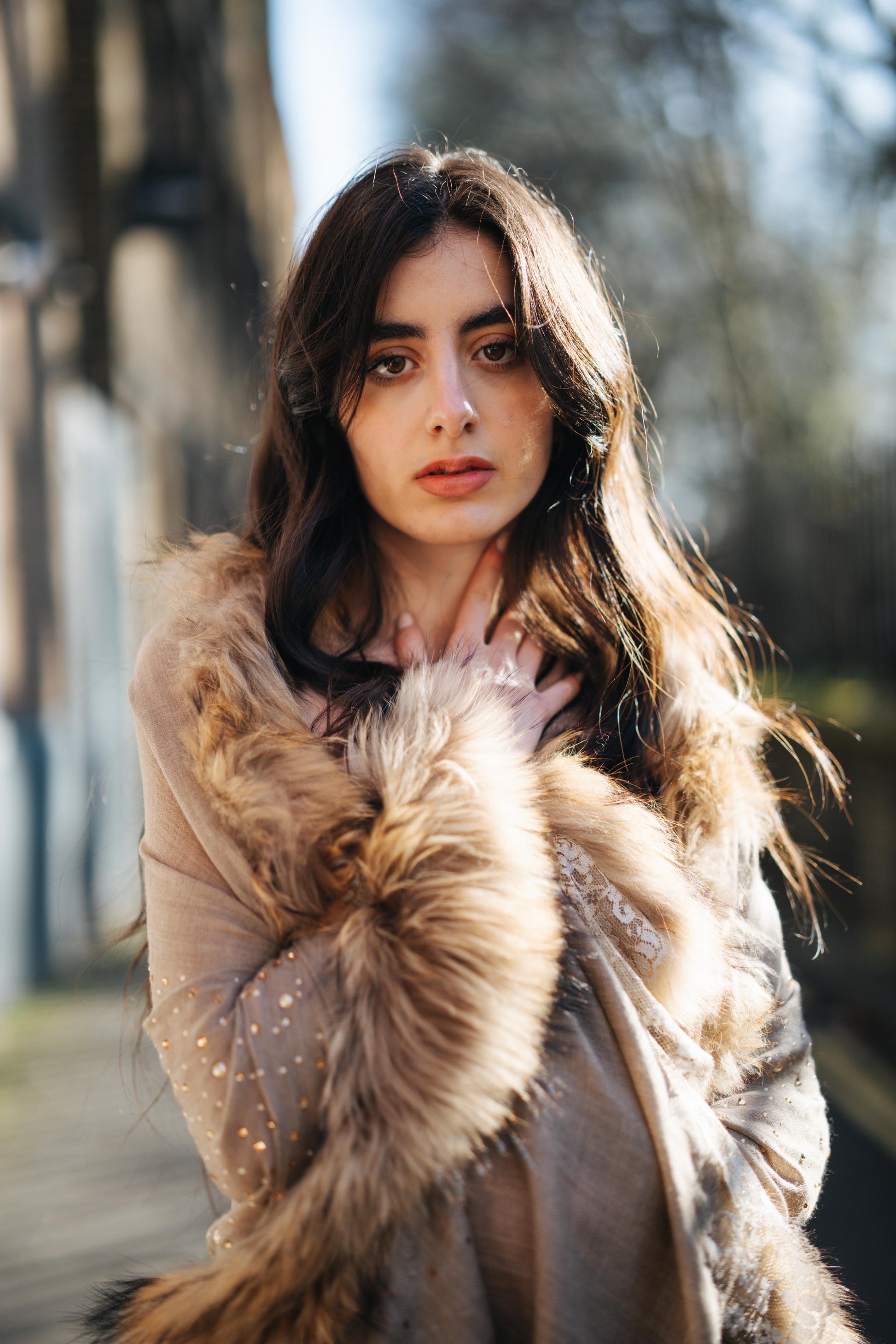 Embellished Pashmina Luxury Scarf in Peach with Faux Fur Trim