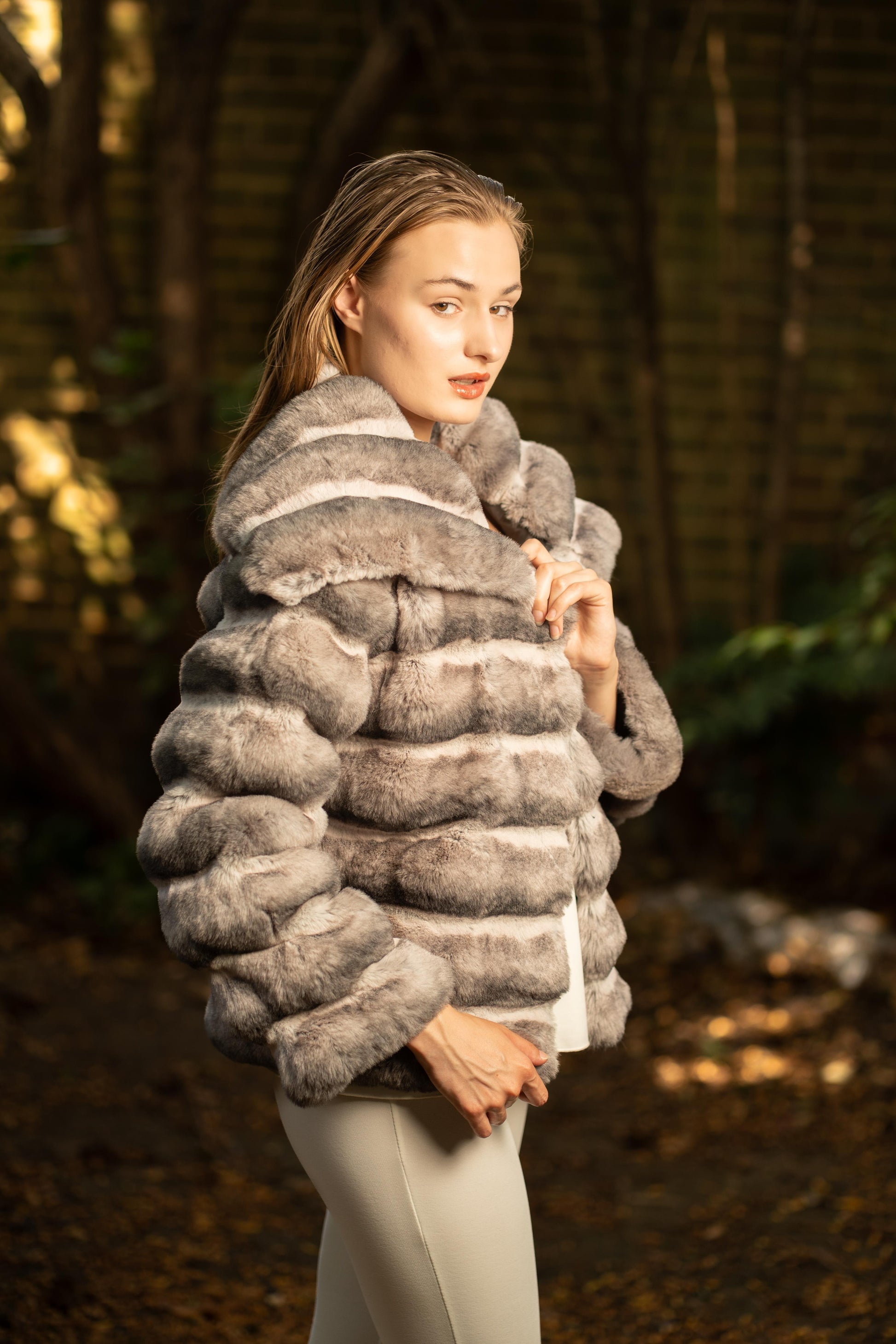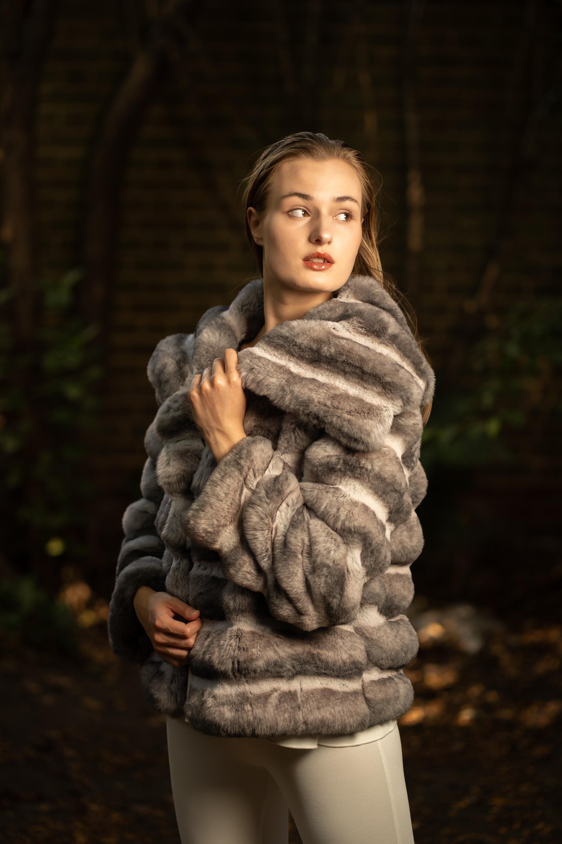 Faux Fur Puffed Silhouette Jacket in Mink