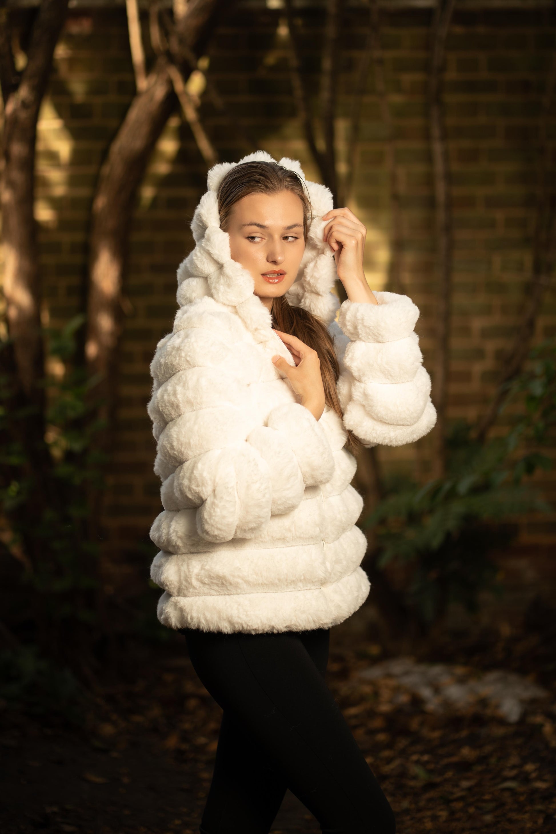 Faux Fur Puffed Silhouette Jacket in White