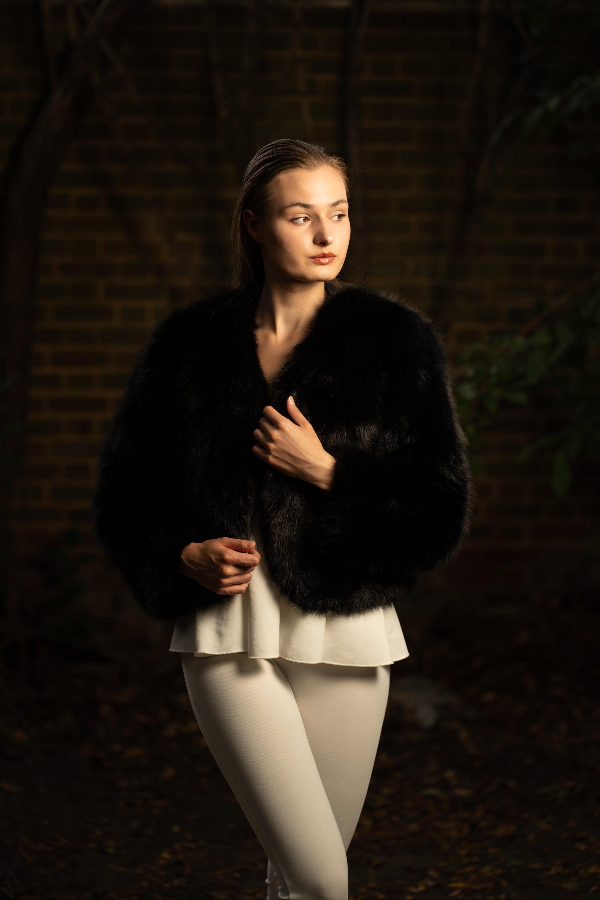 Faux Fur Winter Jacket in Black